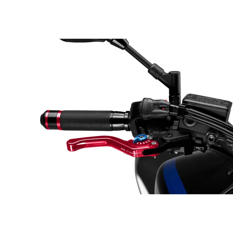 PUIG LEVA 3.0 FRENO FISSA CORTA COLORE ROSSO CON SELETTORE BLU. Materiale: ergal 7075 ricavato dal pieno. Peso: 100 gr. Queste leve hanno un aspetto molto piu' tecnologico e avanzato delle 2.0. Il nuovo look e' stato migliorato e modernizzato. Completamente riprogettata, la sua nuova forma migliora la sensazione della leva sulla nostra mano, il che contribuisce a una migliore presa e favorisce il suo funzionamento rapido e senza sforzo. Se il movimento e' regolare e la posizione naturale, l'esperienza di guida migliora. Lunghezza: 129 mm. Omologato T.U.V. (Attenzione la leva non include l'adattatore)