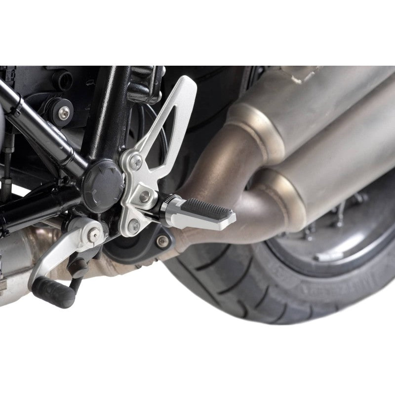 PUIG POGGIAPIEDI MODELLO SPORT COLORE SILVER. Presenta una gommina antiscivolo. Dimensioni (LxH): 72x27 mm. Peso: 90 gr. Inclinazione regolabile. Venduti in coppia. Omologati T.U.V.